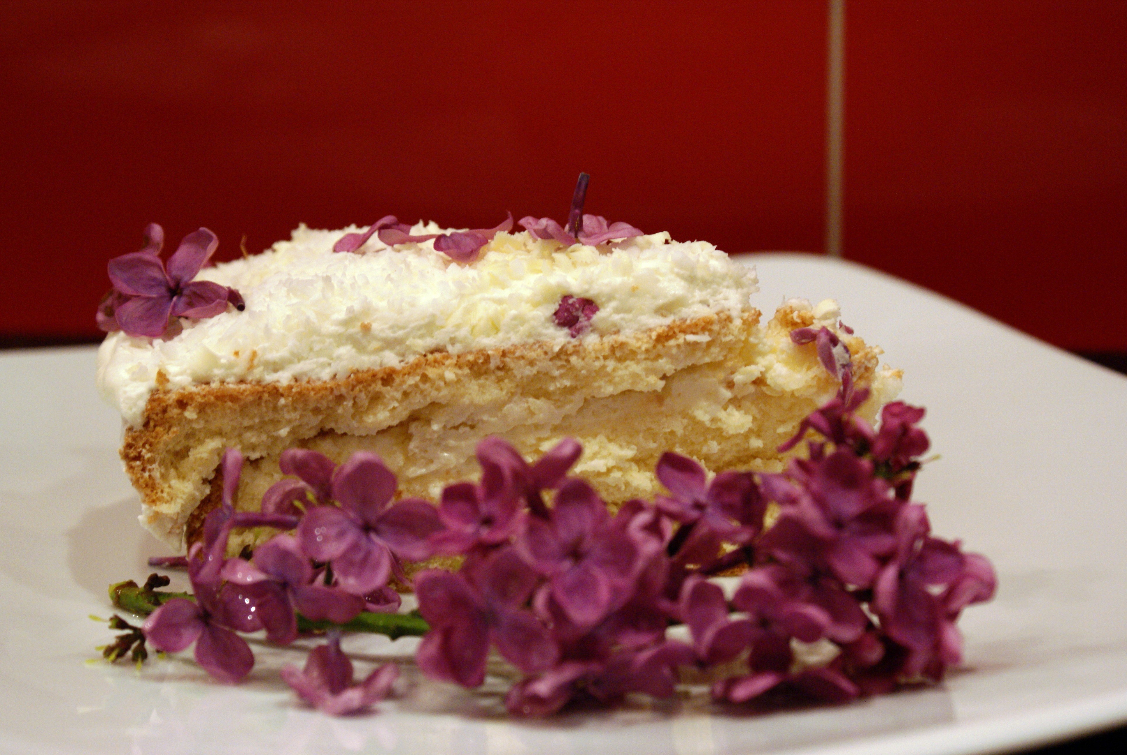 Był majowy, ciepły wieczór. Ciemno, ciepło, nie upalnie. Pachniały kwiaty kwitnących drzew owocowych i bzu. Niesamowity zapach i chyba najbardziej intensywny i zmysłowy czas w roku. Maj. Nabrałem strasznej ochoty na deser. Coś specjalnego, słodkiego, ale jednocześnie lekkiego. Czy tort może być lekki? Chyba nie. Ale na pewno może mu dodać charakteru wiosny. Lekkiego, ale jakże intensywnego. Postanowiłem zrobić tort z kwiatami bzu z kremem kokosowym na bazie mascarpone. Pyszny, aromatyczny, idealny na wiosenny wieczór.