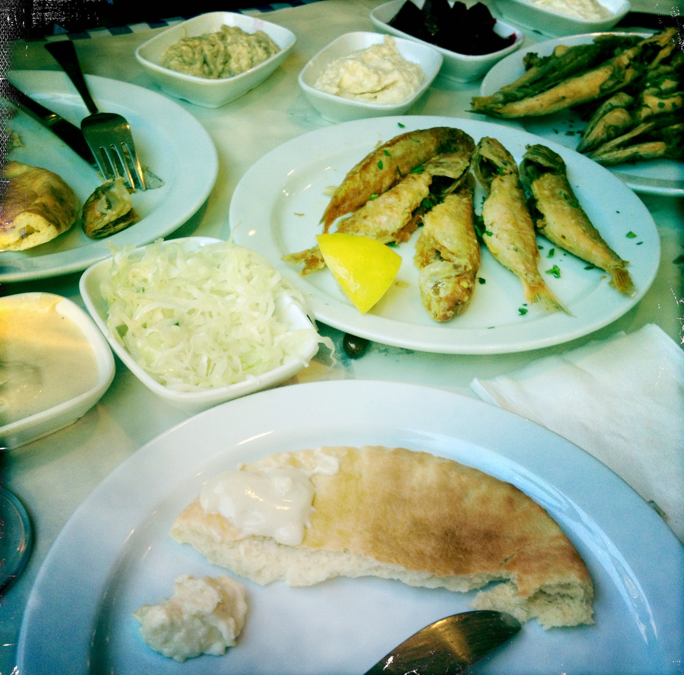 Czyj jest falafel, humus, pita? Czyje są wszystkie maczanki, przyprawy i sałatki? Arabscy Żydzi w Izraelu używają intensywnych przypraw, ale to nie znaczy, że ich jedzenie nie jest koszerne. Europejscy Żydzi powiedzą, że jest za pikantnie, zbyt azjatycko? Ale to właśnie dzięki diasporze, rozproszeniu Żydów po całym świecie ich kuchnia ma tak wiele do zaoferowanie. Wchodząc do przeciętnej restauracji w Tel Avivie, możesz liczyć, że jako starter dostaniesz około dwudziestu różnych przystawek. Humusy rozmaicie podane i przyprawione, pasty z bakłażana, czosnku, na bazie oliwy lub jogurtu, grillowane warzywa, cudowne harrisy, czyli pasty na bazie czerwonej lub zielonej ostrej papryki z duża ilością aromatycznej kolendry. Naprawdę trudno po tym zabrać się za danie główne. A danie główne to przeważnie ryby, z grilla, lub patelni. Wśród nich jedna z moich ulubionych śródziemnomorskich ryb, która w całym basenie morza śródziemnego występuje pod różnymi nazwami. Tu w anglojęzycznym menu występowała pod nazwą red fish.