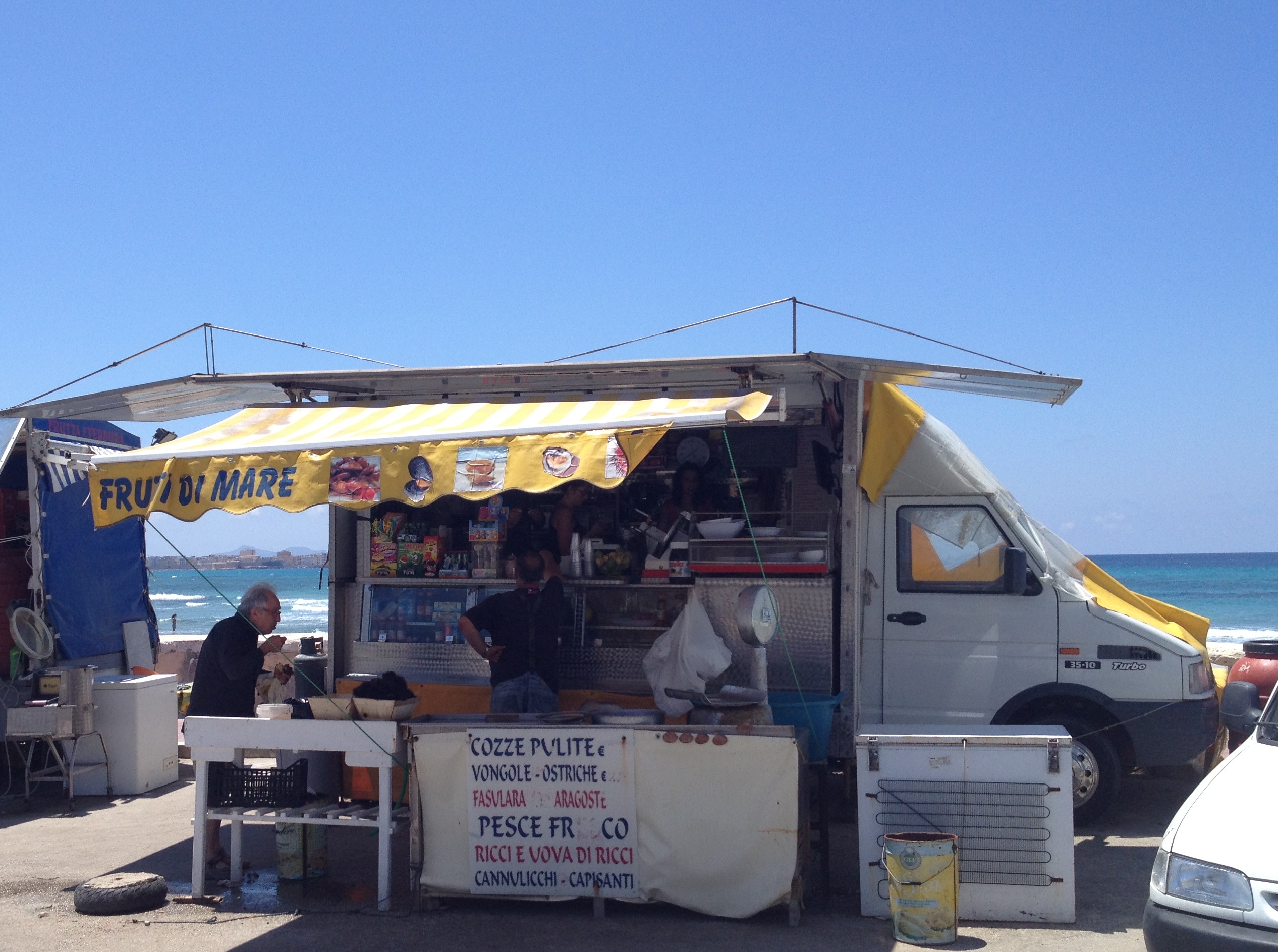 Plaża na obrzeżach miasta. Dwóch starszych, na oko osiemdziesięcioletnich Sycylijczyków, stawiają na małym stoliku kilka czarnych, kolczastych stworzeń. Specjalnym nożykiem zaczynają je rozcinać. Słychać charakterystyczny zgrzyt noża wbijającego się w twardą skorupę. Na stoliku jeden obok drugiego ustawiają przepołowione stworzenia, pomarańczowe i wilgotne w środku. Pod stolikiem stoi wiaderko z wodą. Każda połówka jest delikatnie opłukana w słodkiej wodzie. Obok rozkładają dwa krzesełka turystyczne. Zaczyna się uczta w środku miasta, przy ruchliwej ulicy biegnącej przy morzu w stronę miasta Erice. To Riccio di mare, jadalne jeżowce, wyławiane z morza ręcznie, przysmak wielu renomowanych restauracji. Na Sycylii na wyciągnięcie ręki, na ulicy, przy plaży, za kilka Euro.