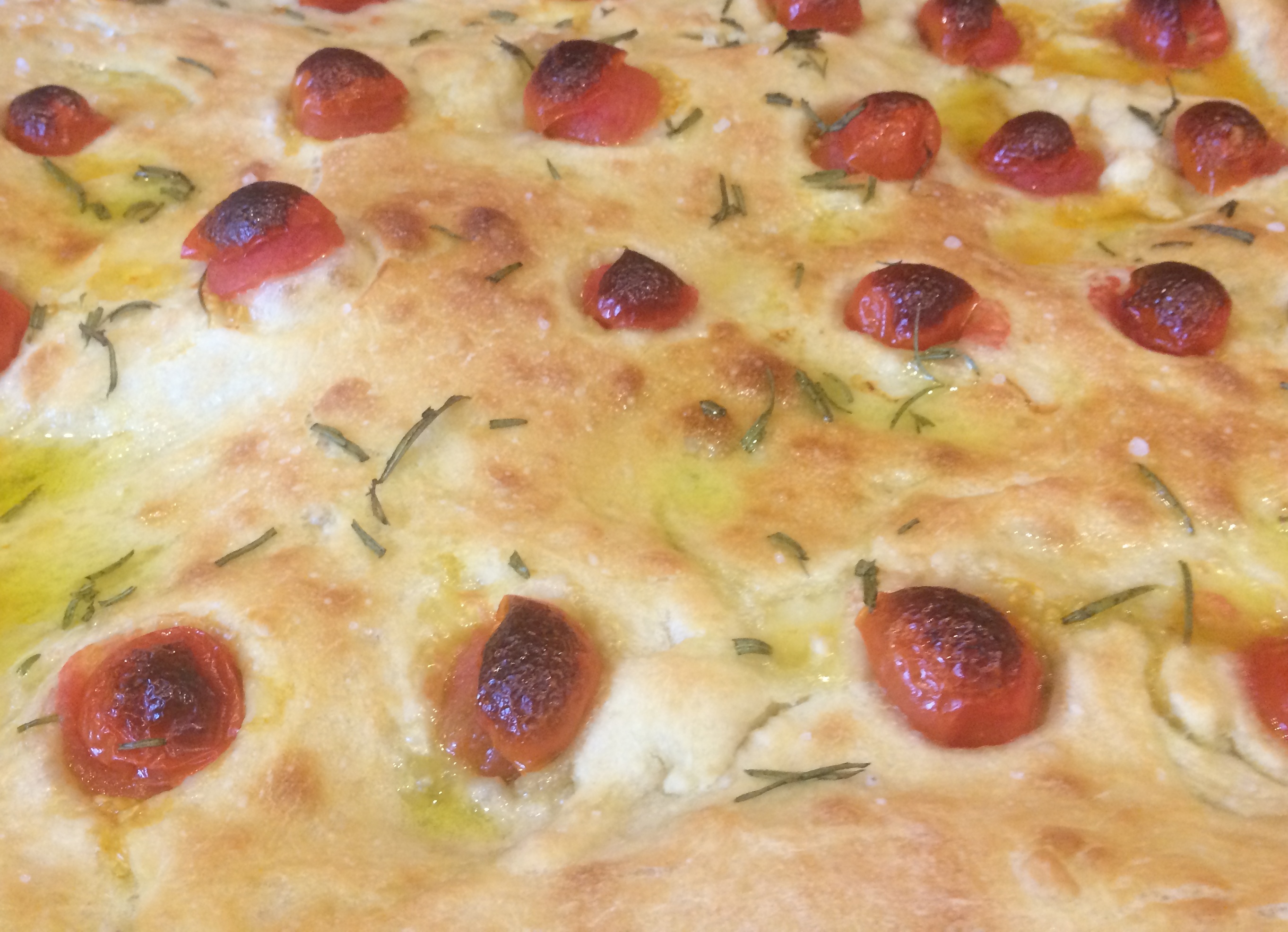 Focaccia świetnie komponuje się z rozmarynem, słodkimi pomidorkami i oliwkami. Opcji jest wiele, przyjemności także. Liguria