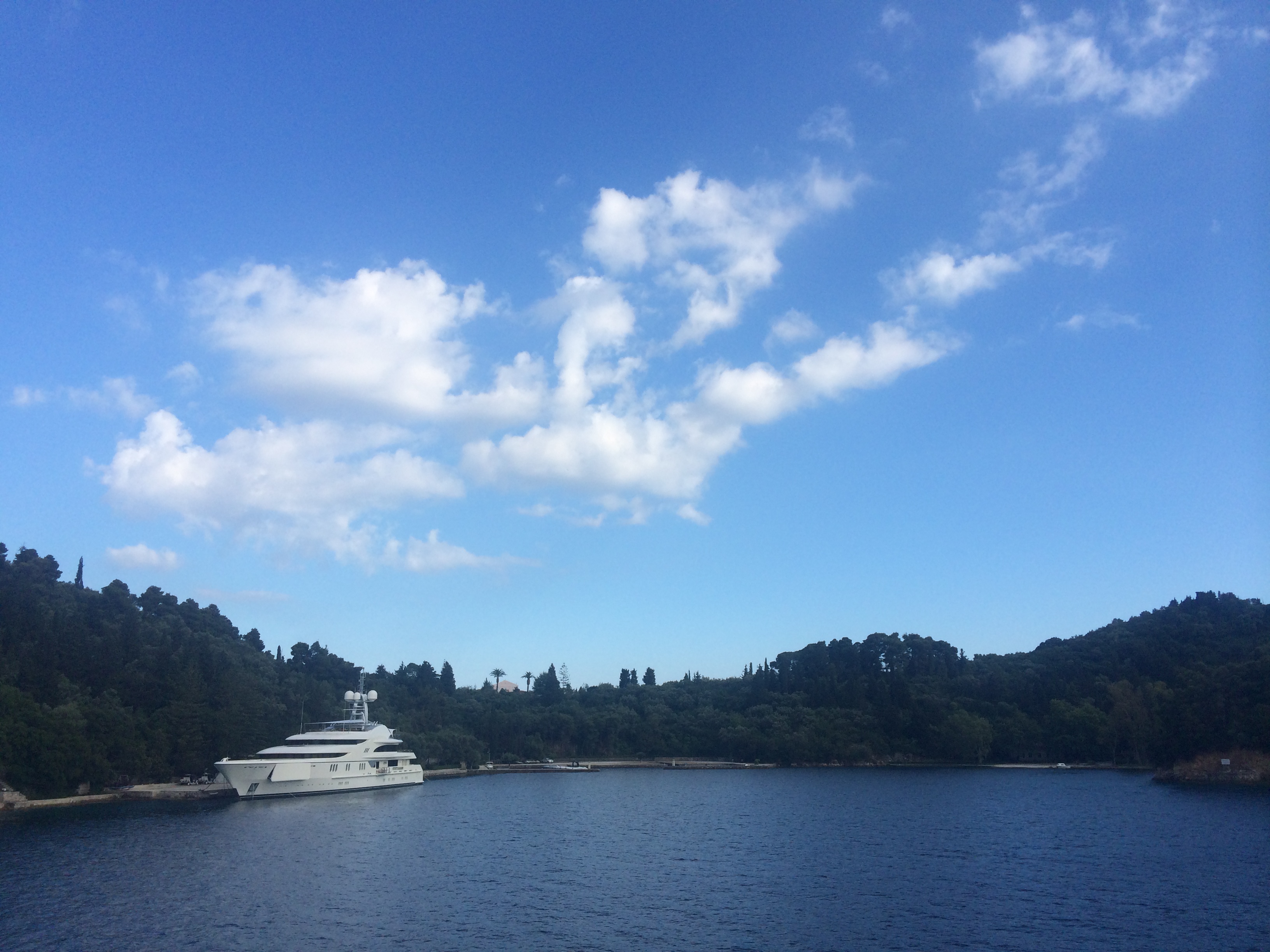 Na przeciwko wyspy po jej wschodniej stronie, jak na wyciągnięcie dłoni rozsypane małe, zielone wysepki. Są tak blisko, że chciało by się wejść do wody i popłynąć w ich stronę. Popłynąć do niewielkiej z tej perspektywy rezydencji nad brzegiem morza. Obecnie opuszczonej, ale pamiętającej lata 60′, kiedy w trakcie romansu z Marią Callas, Arystoteles Onassis kupił wyspę Skorpios. Wyspę niewielką, porośniętą lasami i unikatową roślinnością. Wyspę z prywatnymi plażami, przystanią dla jachtów i wielkim domem dla ludzi pracujących na wyspie, zawsze do dyspozycji właścicieli i gości. Wyspę z trzema rezydencjami i lądowiskiem dla helikopterów. Wyspę na której Onassis wziął ślub z Jackie Kennedy i specjalnie dla niej stworzył niewielką plażę z domkiem, przebieralnią. Obecnie z plaży nie korzystają jej właściciele a statki wycieczkowe mogą do niej podpływać. Podpływać do ogrodzenia z tabliczką zły pies, pływać w krystalicznie czystej wodzie z jednaj strony ze świadomością inwigilacji przez obecnych właścicieli, z drugiej z zetknięciem z romantyczną historią żony Kennediego i magnata finasowego Onasisa.