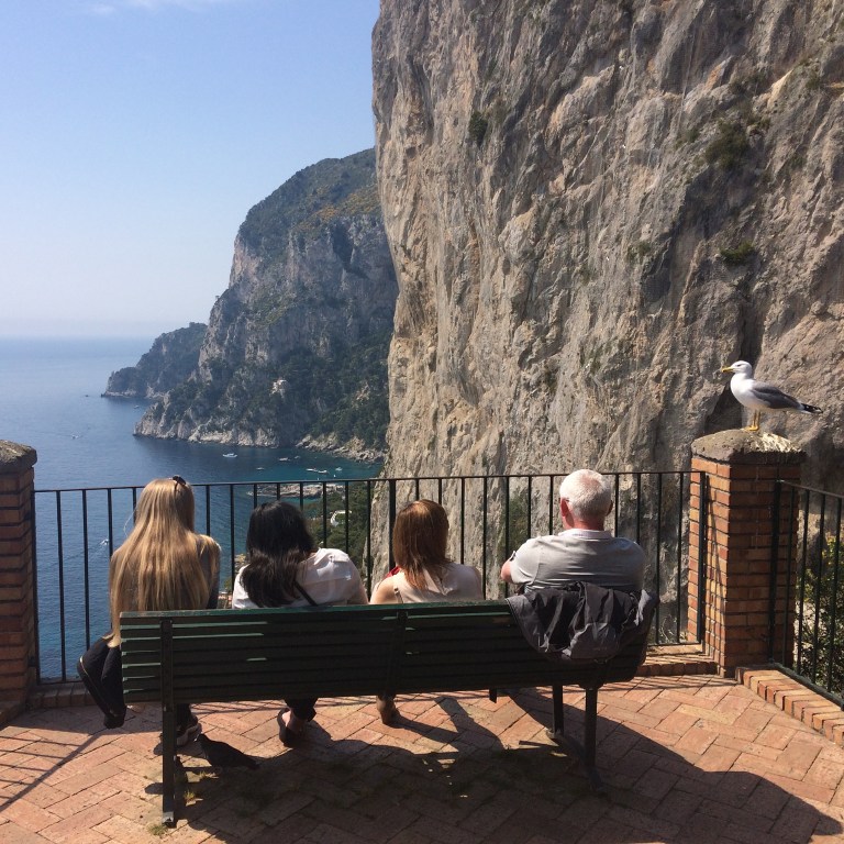 Wśród nich obowiązkowa Capri. Piękna, wymagająca oddzielnego wpisu. Czterdzieści minut wodolotem i znajdujemy się w kompletnie innym miejscu, blisko Neapolu, daleko od jego klimatu. Spokojnie, wyniośle. Nawet mewy czują się tu wyjątkowe, są pompatyczne, nie boją się ludzi, siadają na ogrodzeniach Ogrodów Augusta, kilka metrów od siedzących na ławkach spacerowiczów, patrzą wyniośle. To ich raj na ziemi.